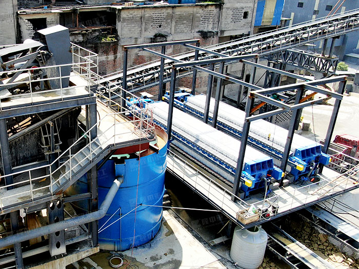 尾礦脫水系統(tǒng)可以處理70%~80%左右的尾礦,尾礦含水率15%~20%,干尾礦可以直接通過皮帶運輸?shù)?..